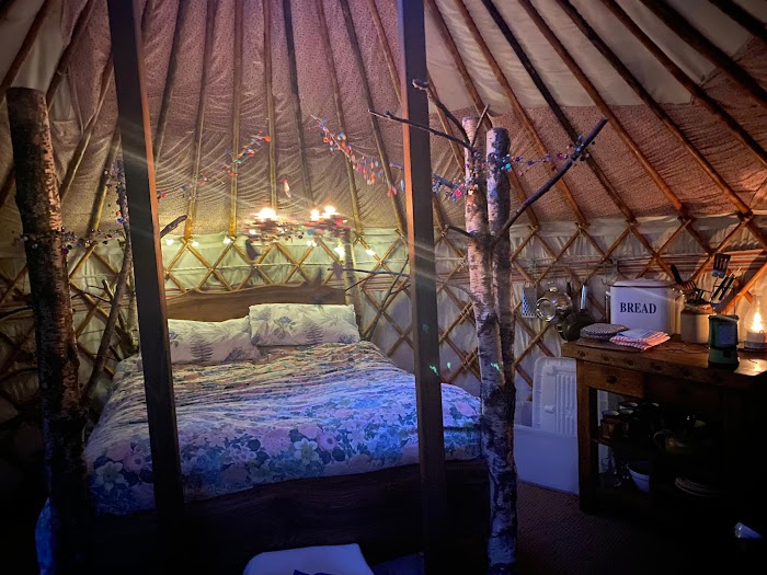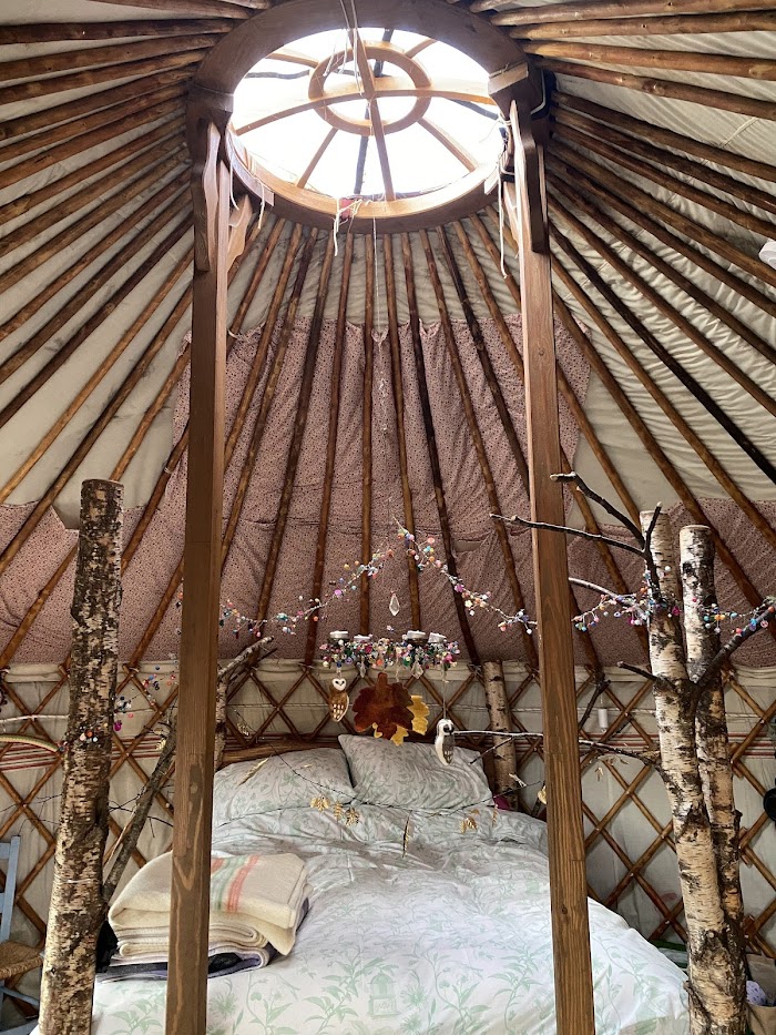 If you love the outdoors this is a quaint, fun and peaceful place. Wear wellies or walking boots and don’t take too much luggage! To get to the yurt you need to walk down a small slope and cross over a rope bridge. It was clean on arrival with a good supply of kindling, firelighters and wooden logs. The decor was beautiful and the bed surprisingly comfortable. The stove heated the yurt well so we didn’t feel cold. We were also able to cook breakfast as there was a cooking stove and pans provided. We used the communal kitchen to charge our phones and make a quick coffee in the mornings. As we had read what to do on arrival and studied the map, we didn’t need to contact the owners for anything. We were left to our own devices which we appreciated as it is meant to be wild living after all! But the owners are contactable by WhatsApp. I messaged before and after our stay and a response was received quickly on both occasions. Thank you for a brilliant stay we will return!